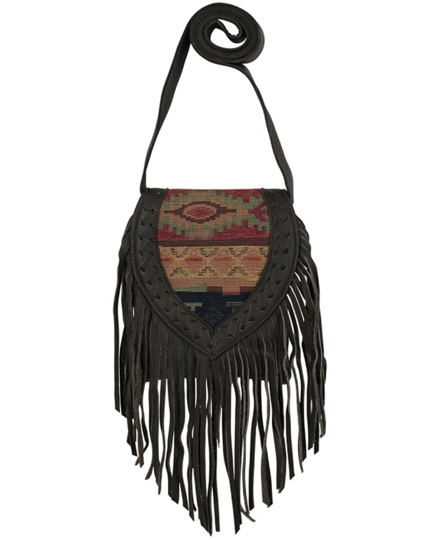 American West Women’s Southwestern Tapestry Fringe Saddle Crossbody