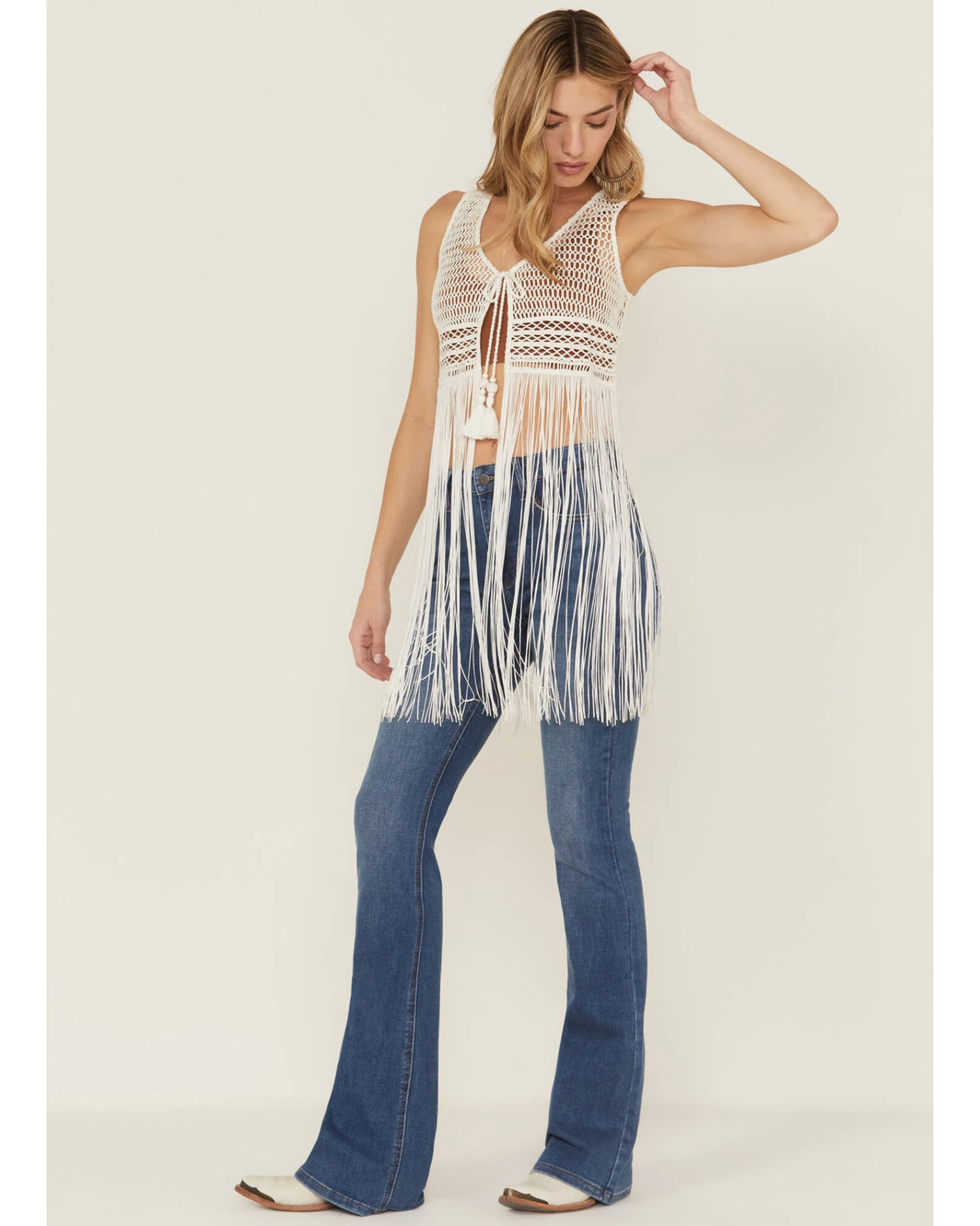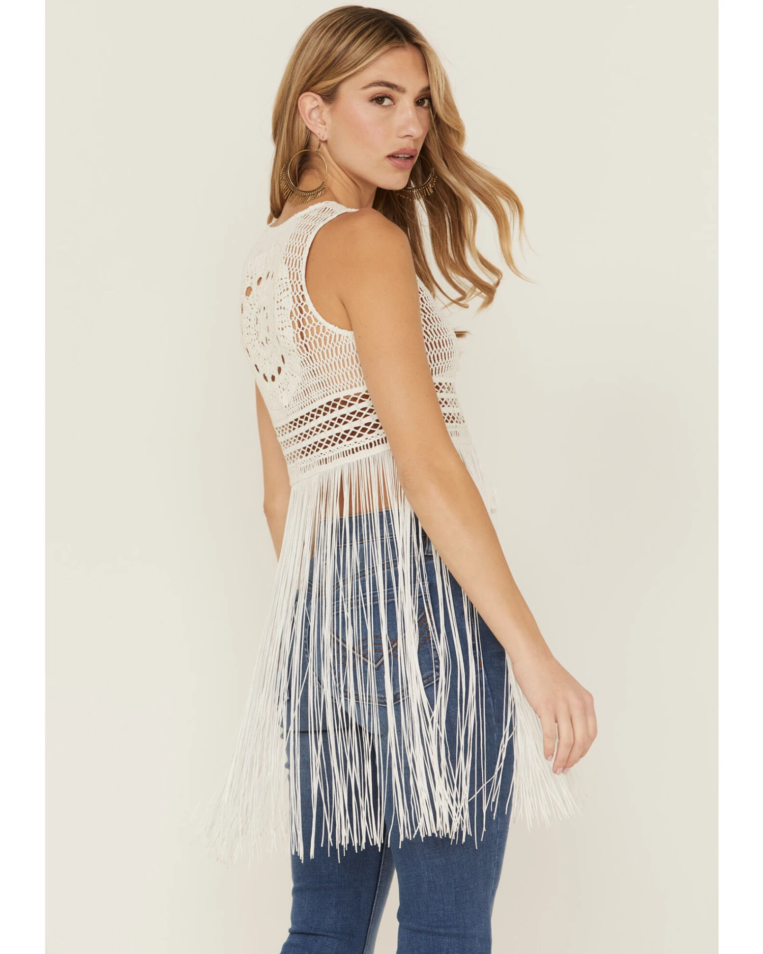 - Fringe details along bottom hem
