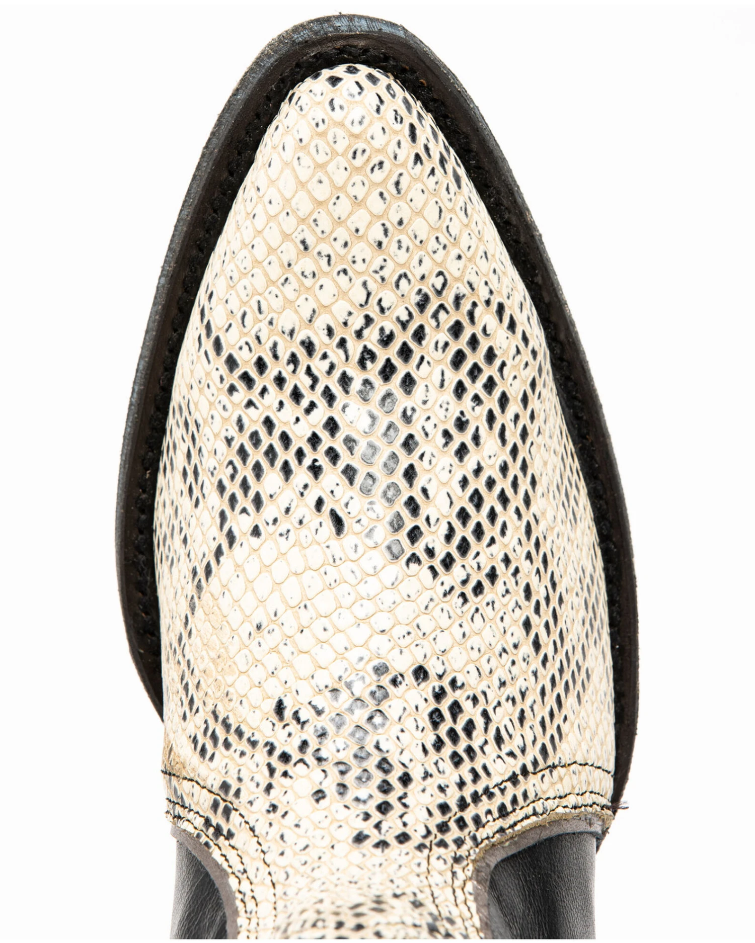 - Snake print, full-grain leather