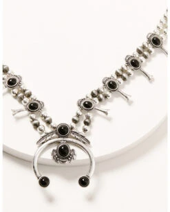 Shyanne Women’s Silver Beaded Squash Blossom Onyx Stone Necklace