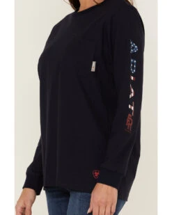 Ariat Women’s FR USA Stretch Logo Long Sleeve Work Pocket T-Shirt