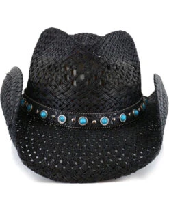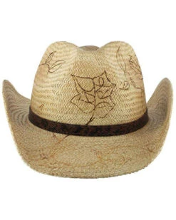 Shyanne Women’s Plumazles Brown Leaf Band Raffia Straw Western Hat